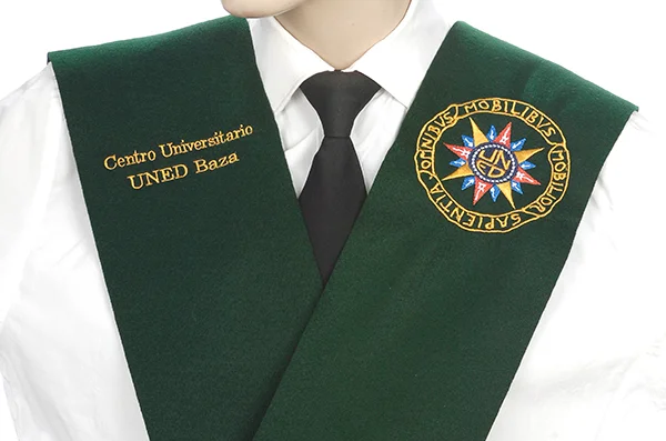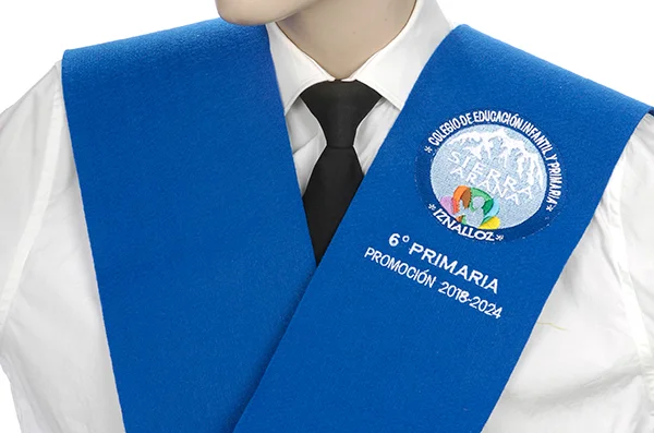 En la parte izquierda de las misma se borda el escudo del centro de estudios y su respectivo año de promoción.
